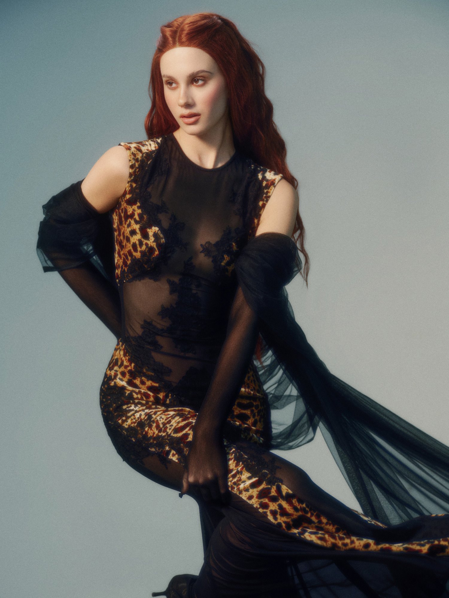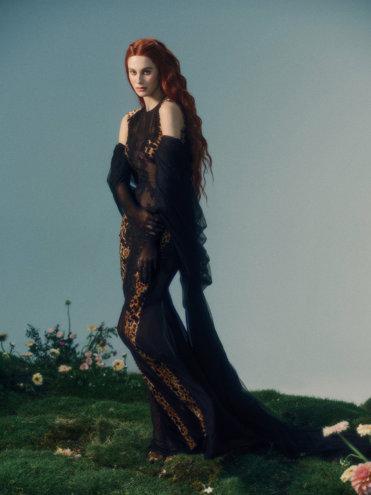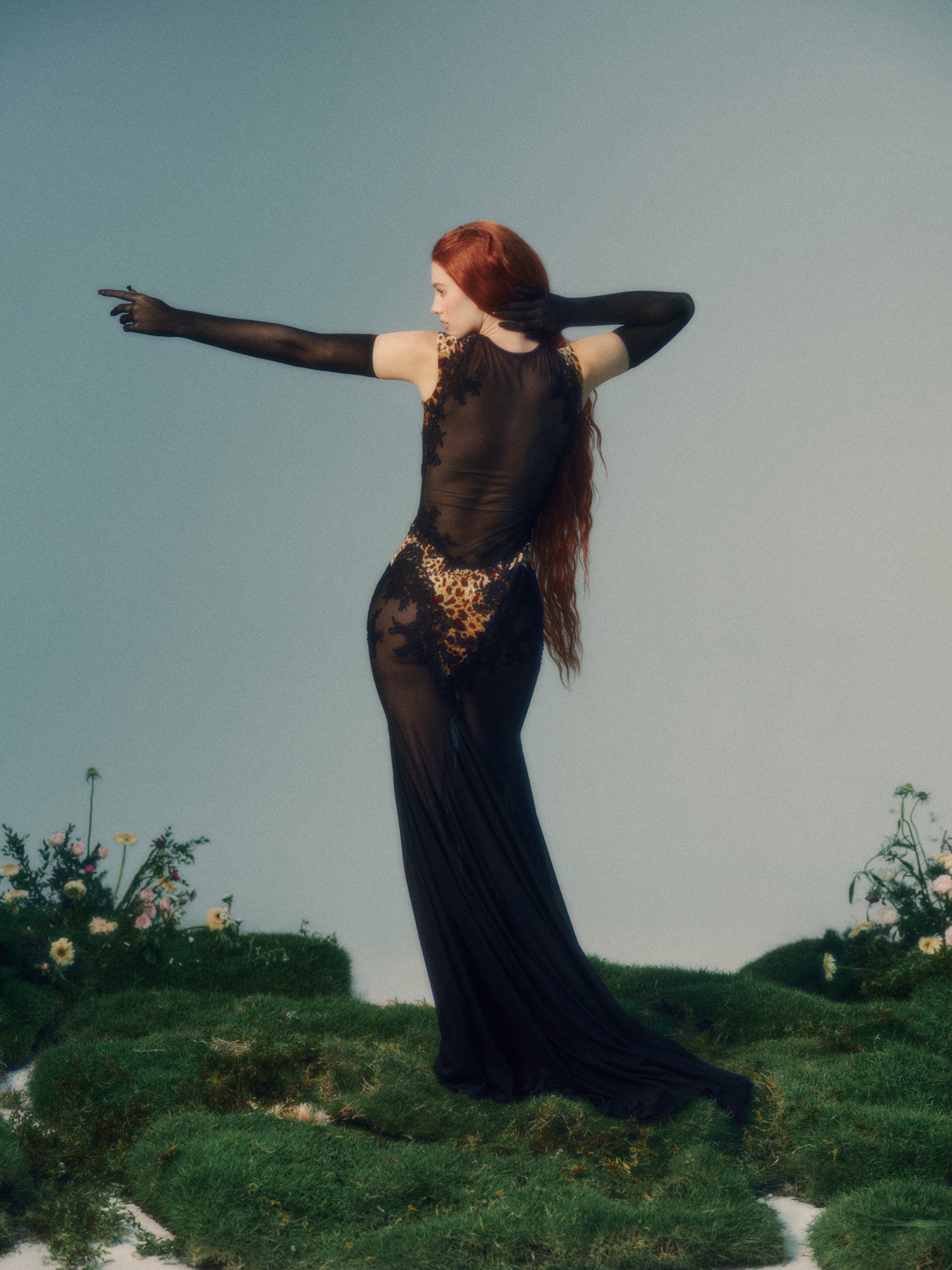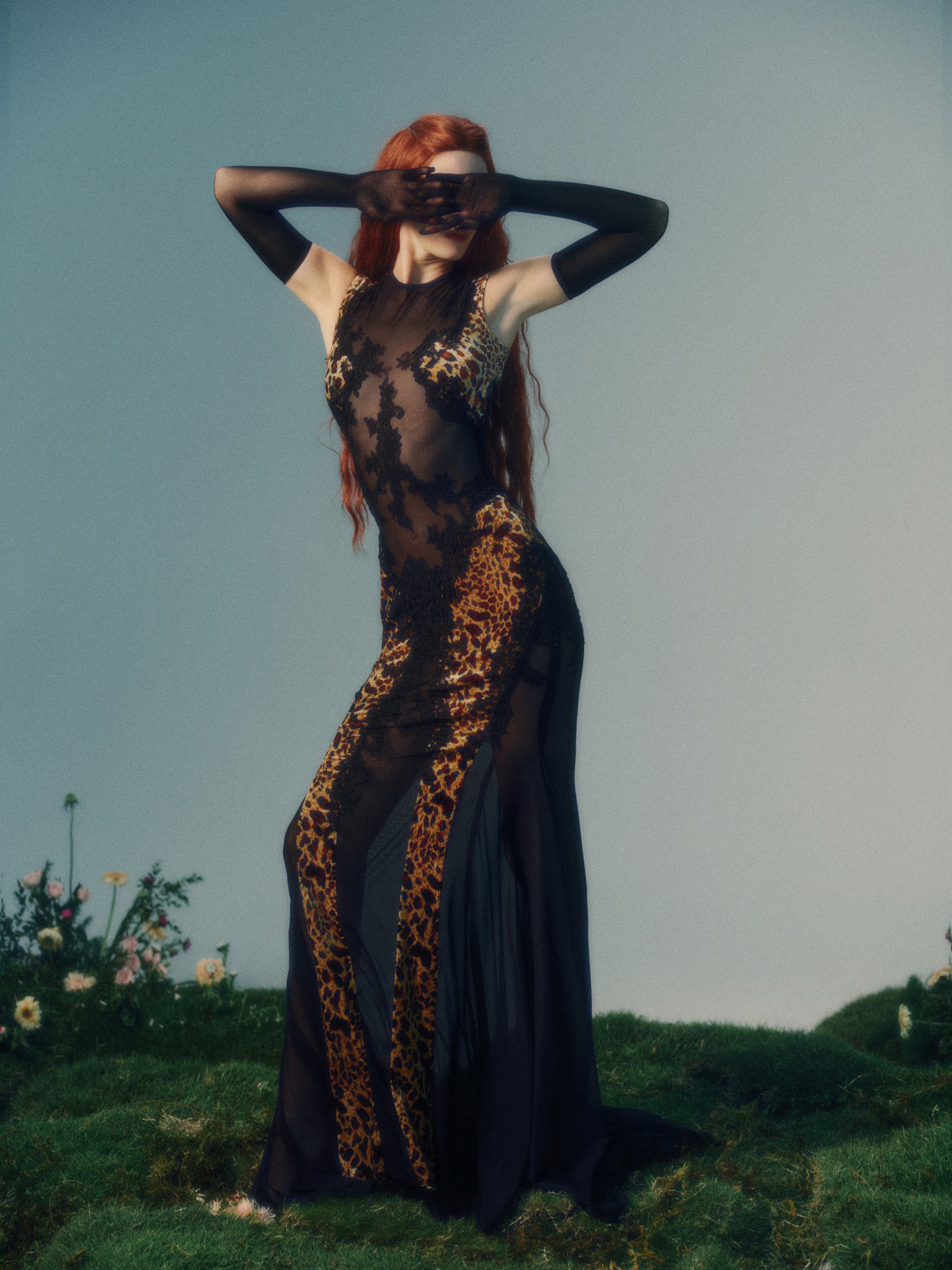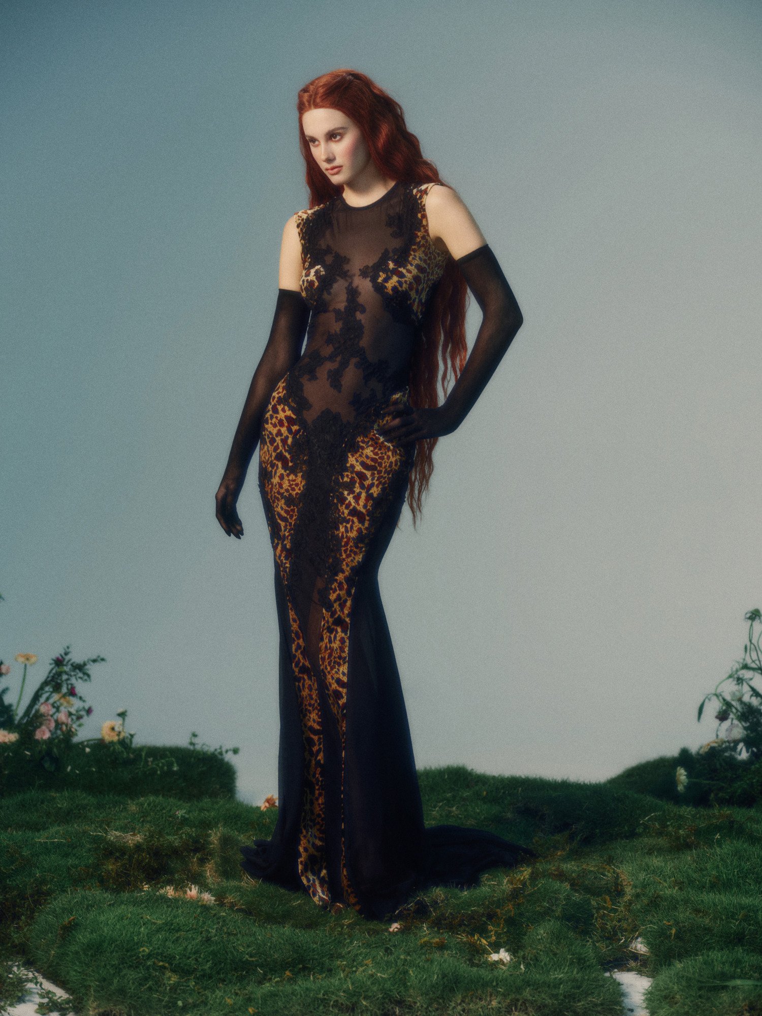 Shedding the veils of silk, Cybele – the Queen of Wild Beasts – awakens primal instinct through the art of suggestive sheerness. Against a canvas of iconic leopard print, this silhouette tells the story of a woman in total command of her sensuality: a raw, untamed beauty blossoming within the garden of La Primavera.
