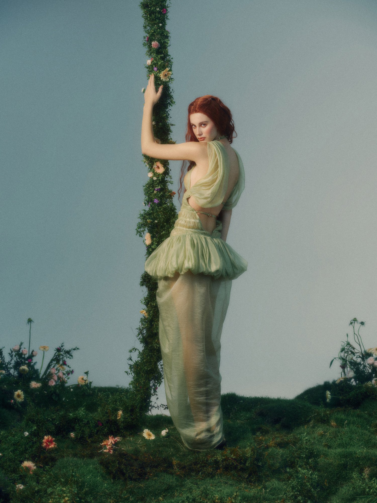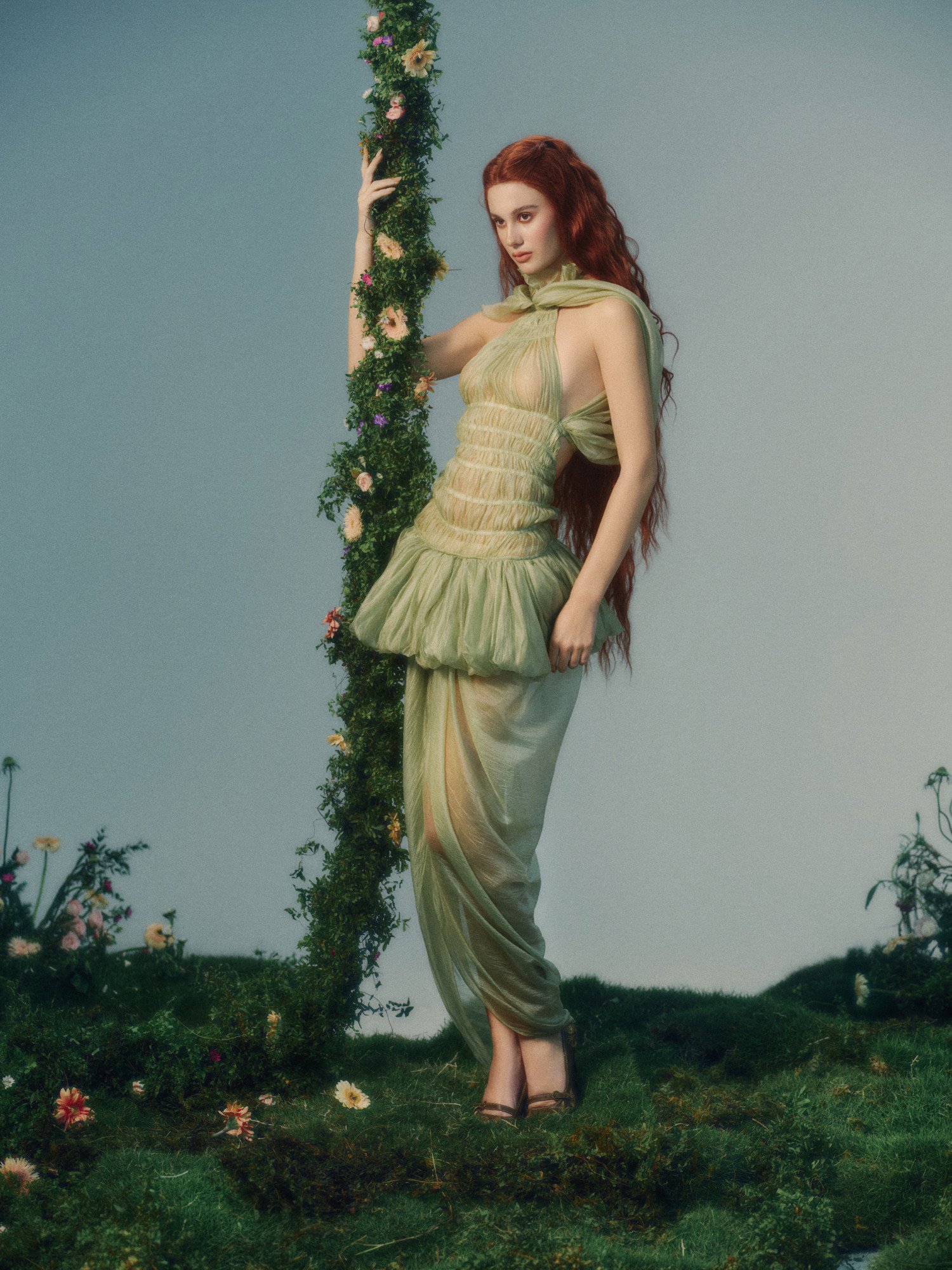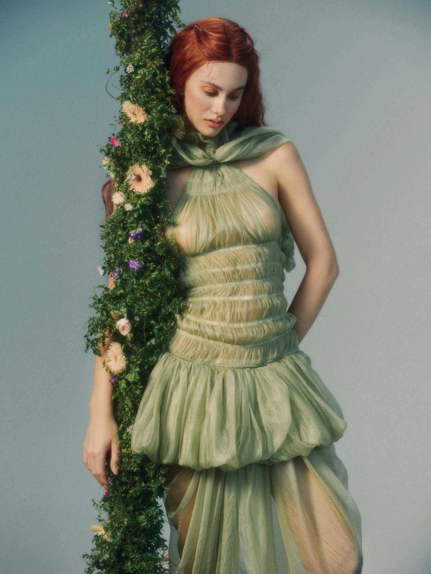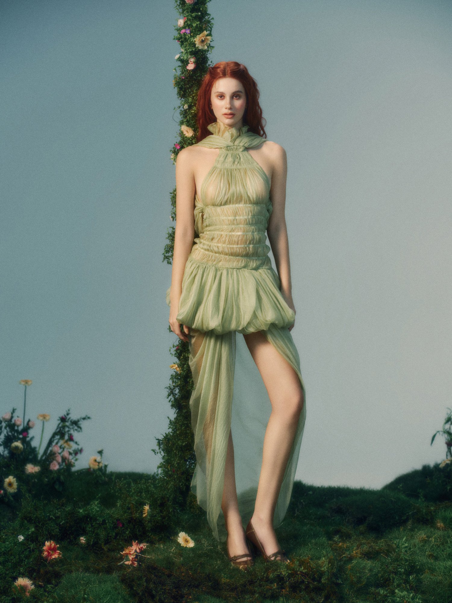 If spring were a melody, Linos would be its opening chord. Defined by exquisite smocking and tiers of voluminous sheer crepe, this look captures a provocative transparency. It is the art of the fold – a delicate balance between sheer vulnerability and bold, sculptural form.