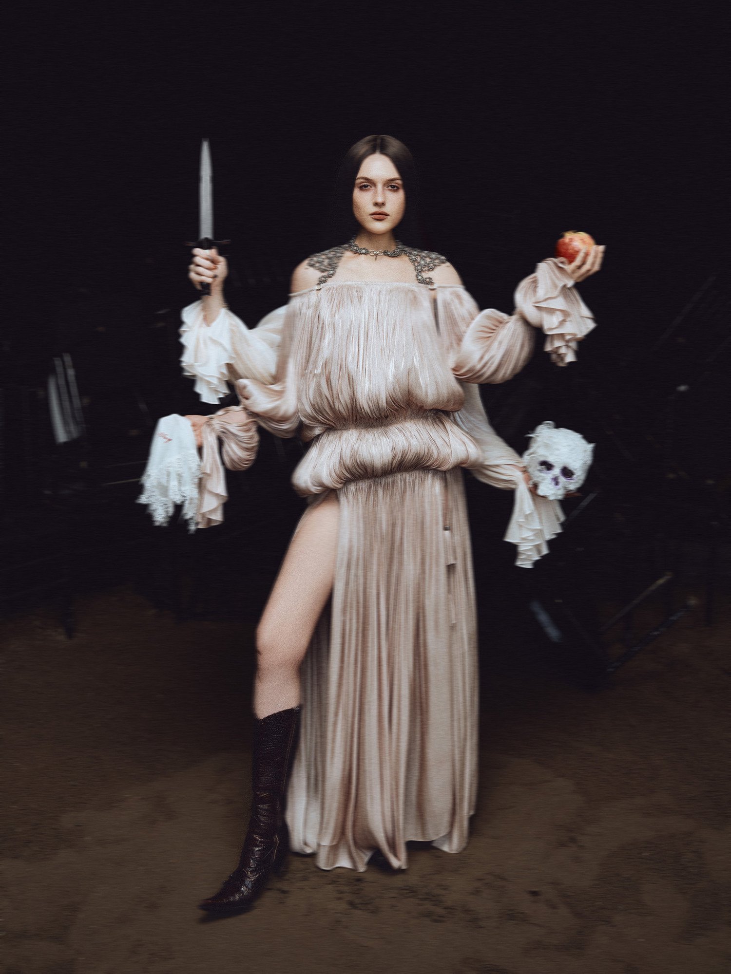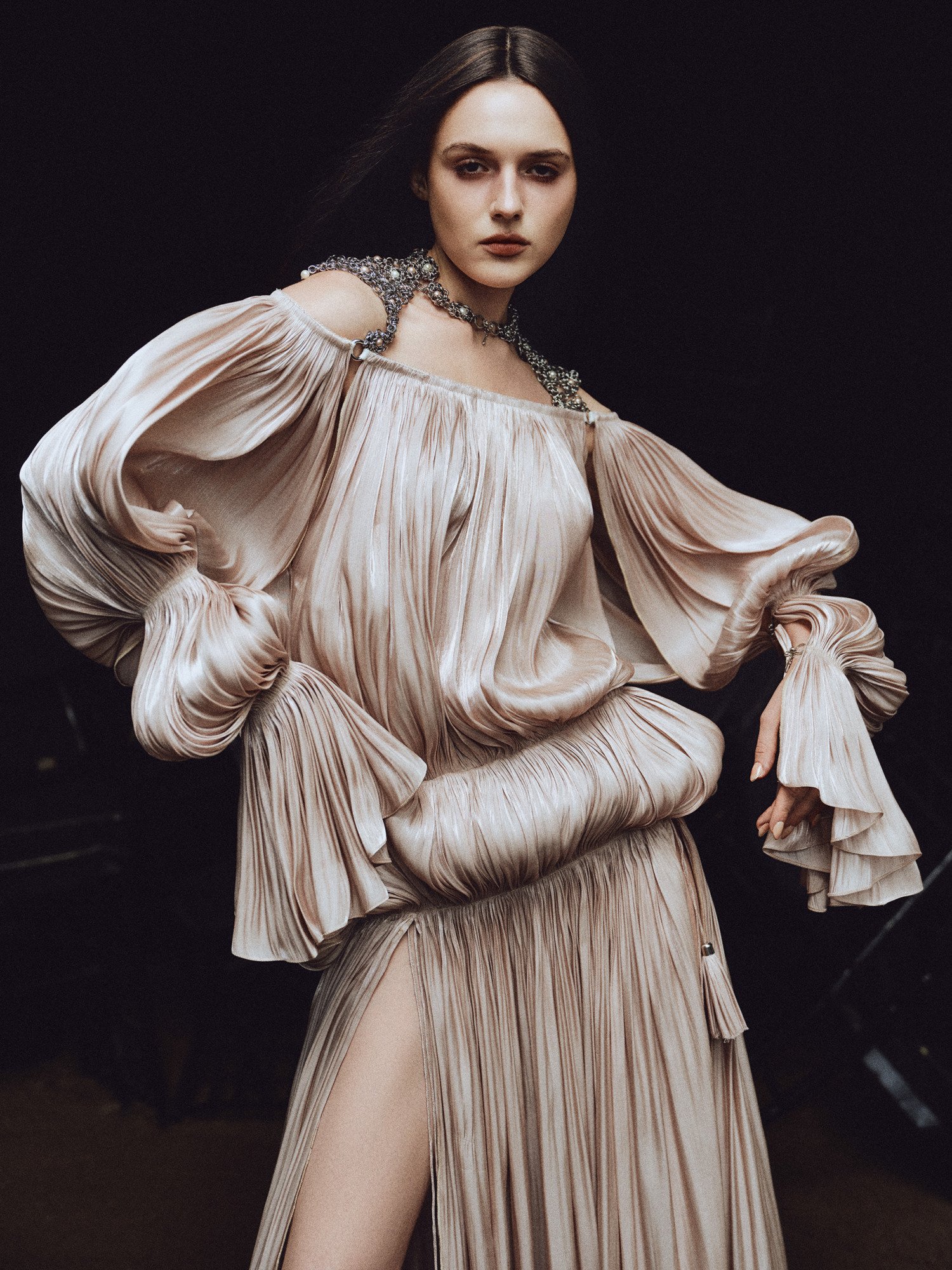 ▪️Form: Maxi gown with exaggerated bishop sleeves