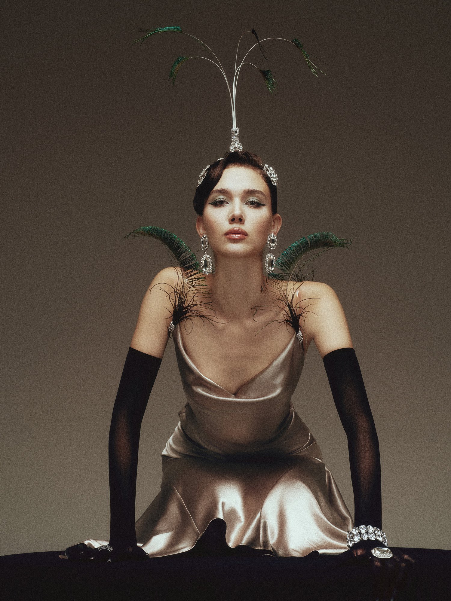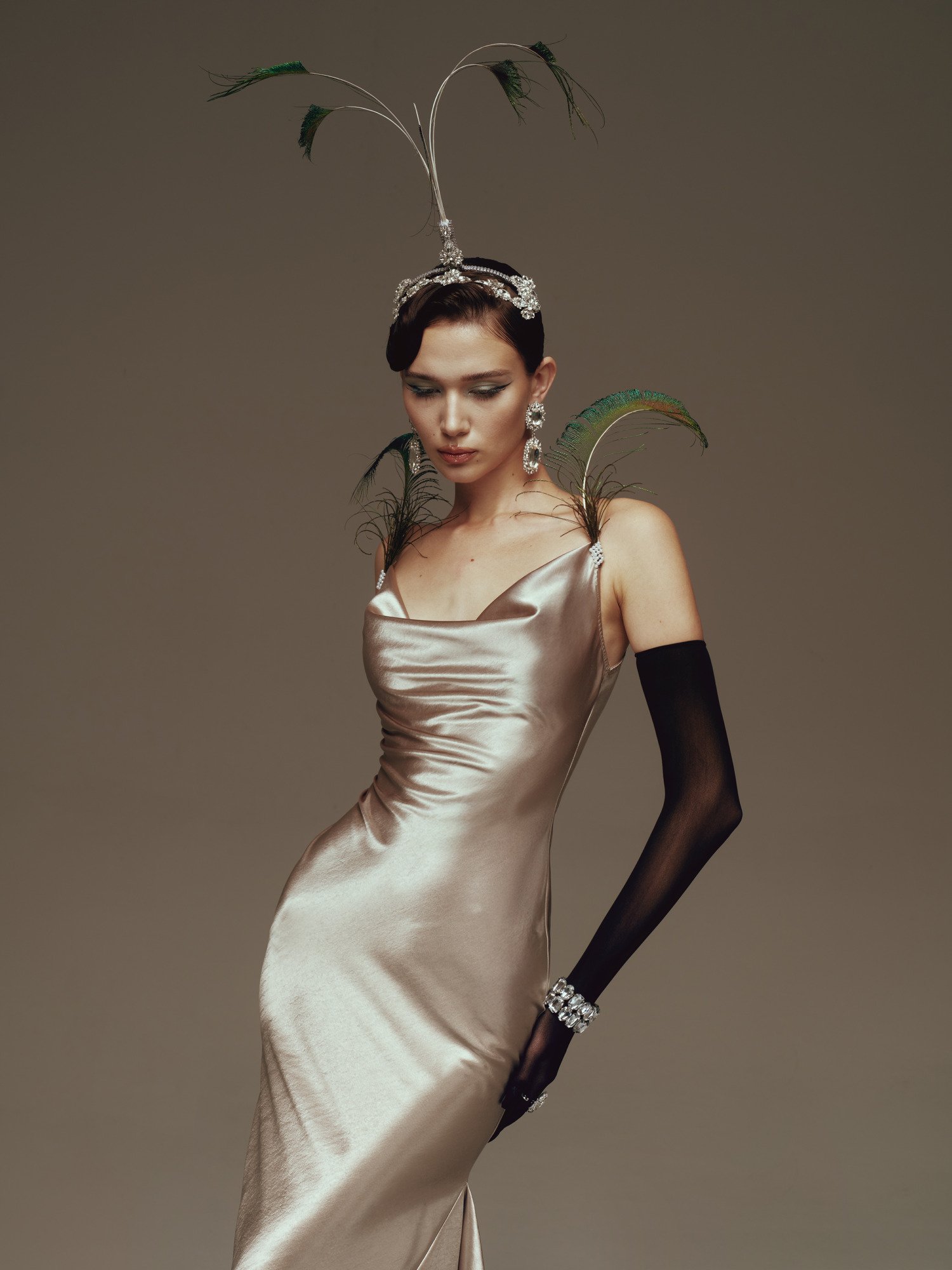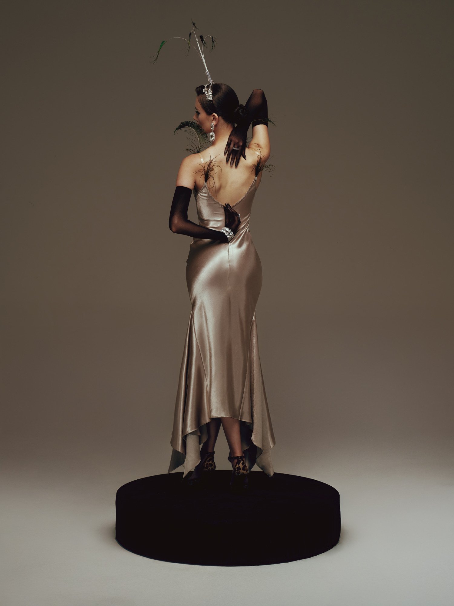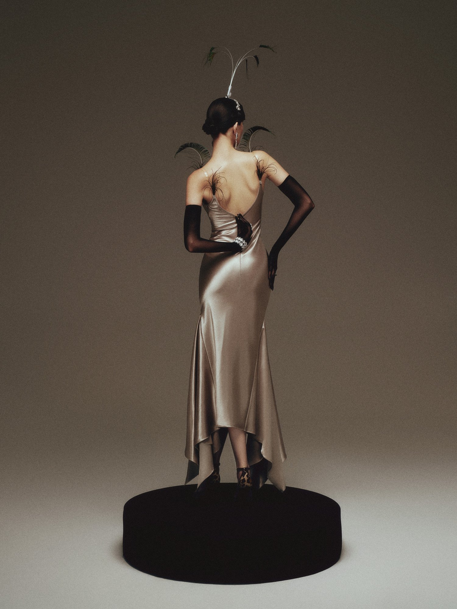 The design is crafted from premium satin, featuring a smooth, lustrous surface that gently catches the light while contouring the body to accentuate refined curves. The asymmetrical mermaid hem drapes fluidly with movement, creating a graceful, sensual effect that elongates the silhouette and evokes a sense of timeless, classic elegance.